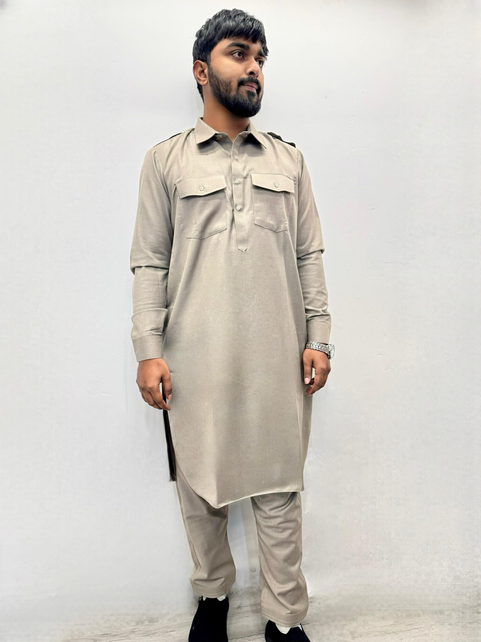 ✨ Men’s Pathani Kurta Shalwar – BEIGE CREAM