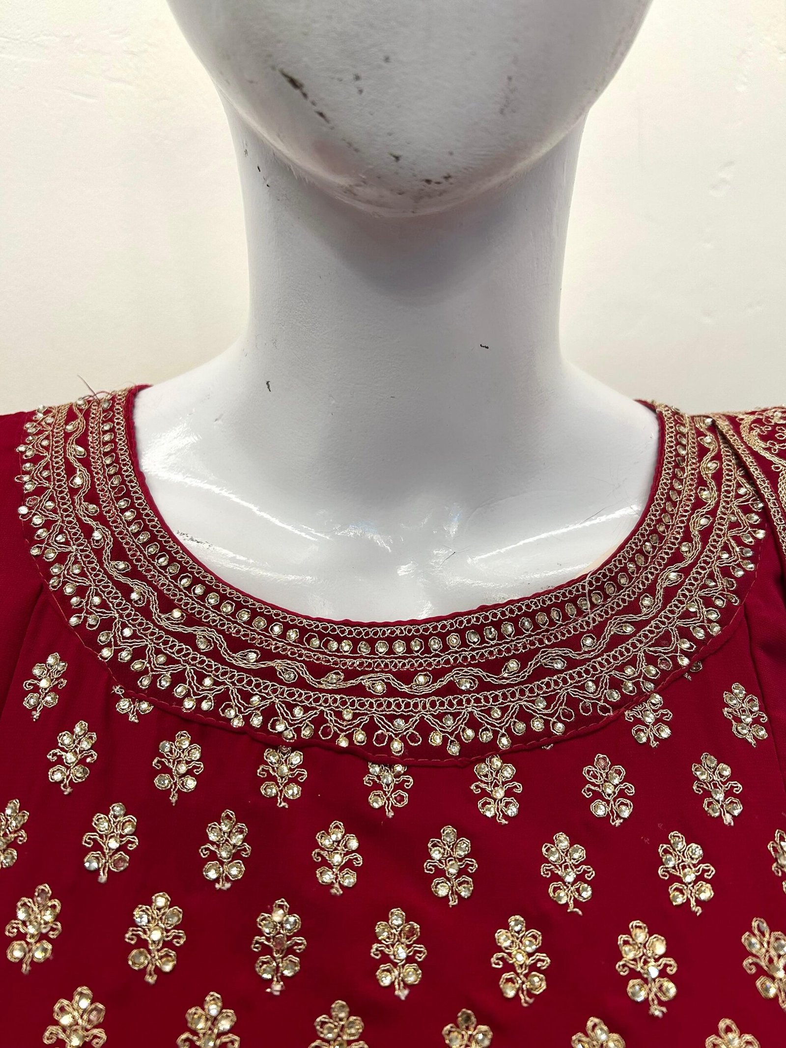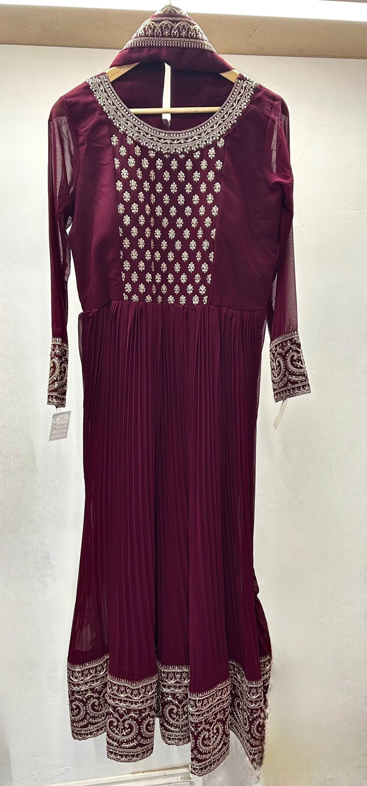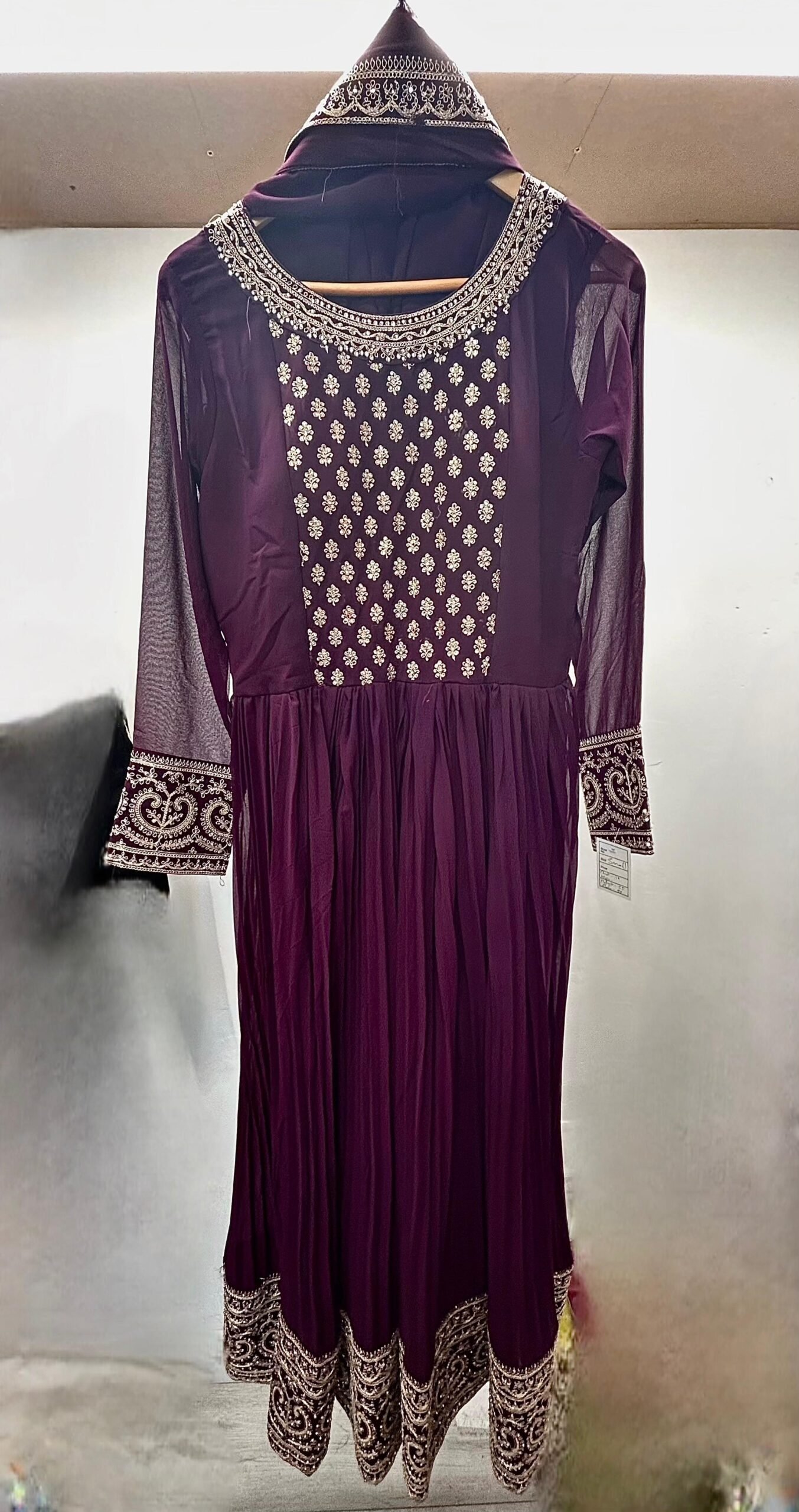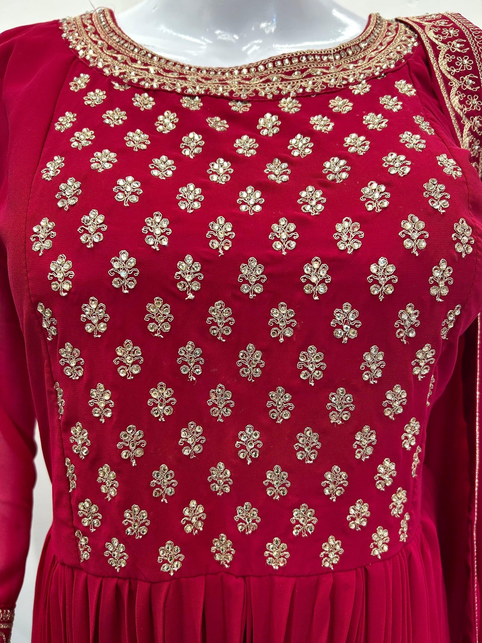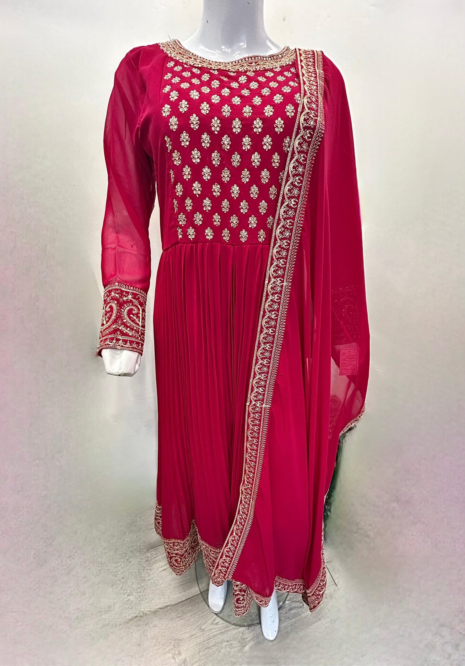 Step into timeless elegance with this stunning deep rose/magenta Anarkali suit, designed to make every occasion special. Crafted with a perfect blend of traditional charm and graceful detailing, this ensemble is ideal for festive celebrations, weddings, and evening gatherings.