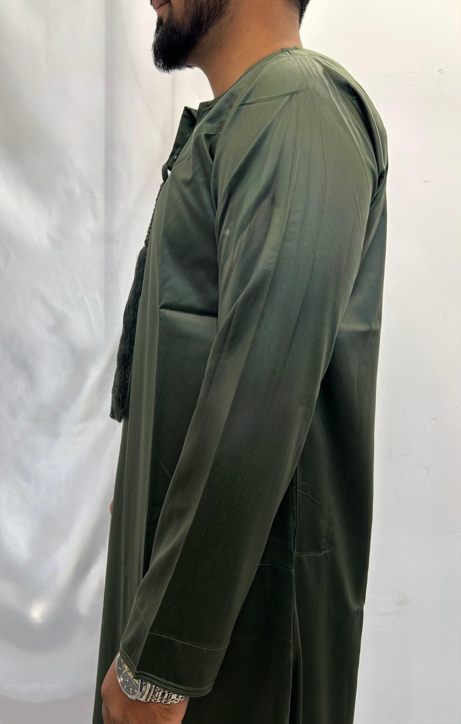 Discover the perfect mix of tradition and modern style with the Khaki silky Emirati Tassel Thobe. Made for comfort and elegance, this thobe features a smooth creamy colour with a gentle shine, making it ideal for formal events, cultural occasions, or stylish everyday wear.