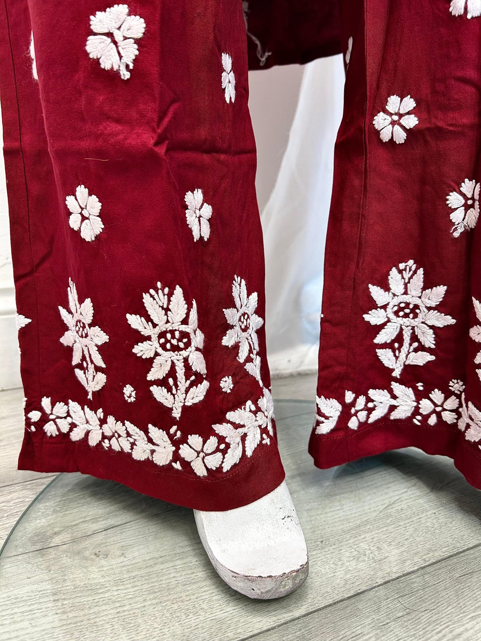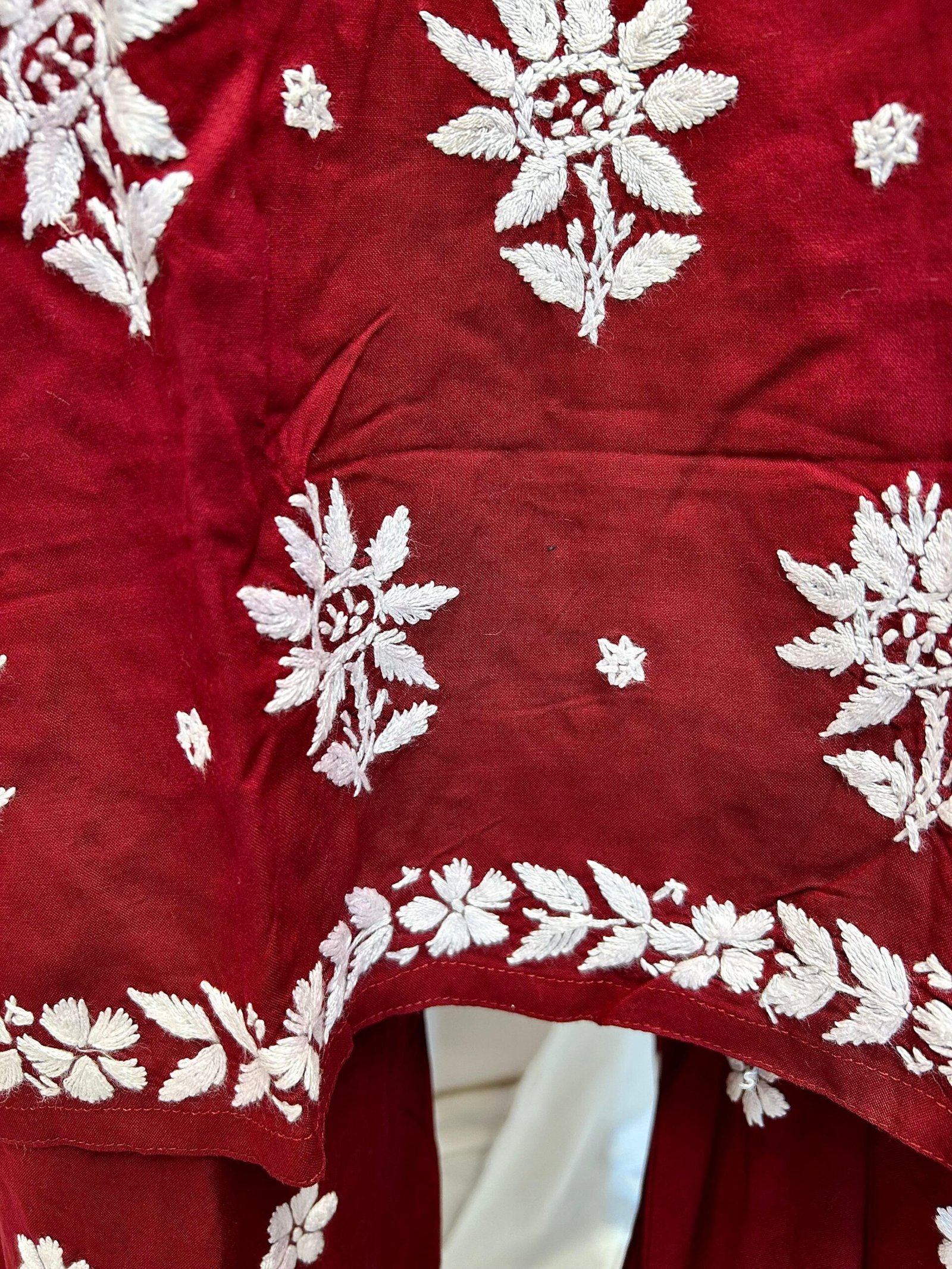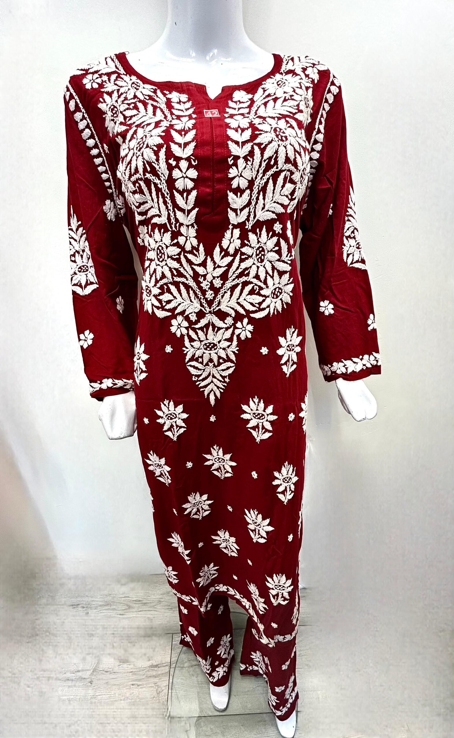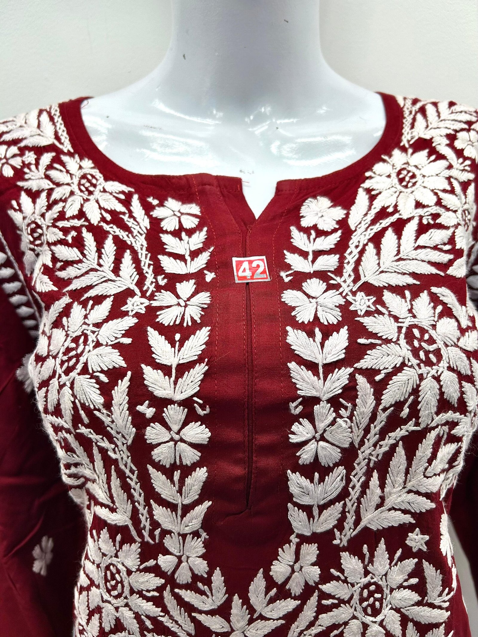 Embroidered Cotton Kurta – Maroon & White