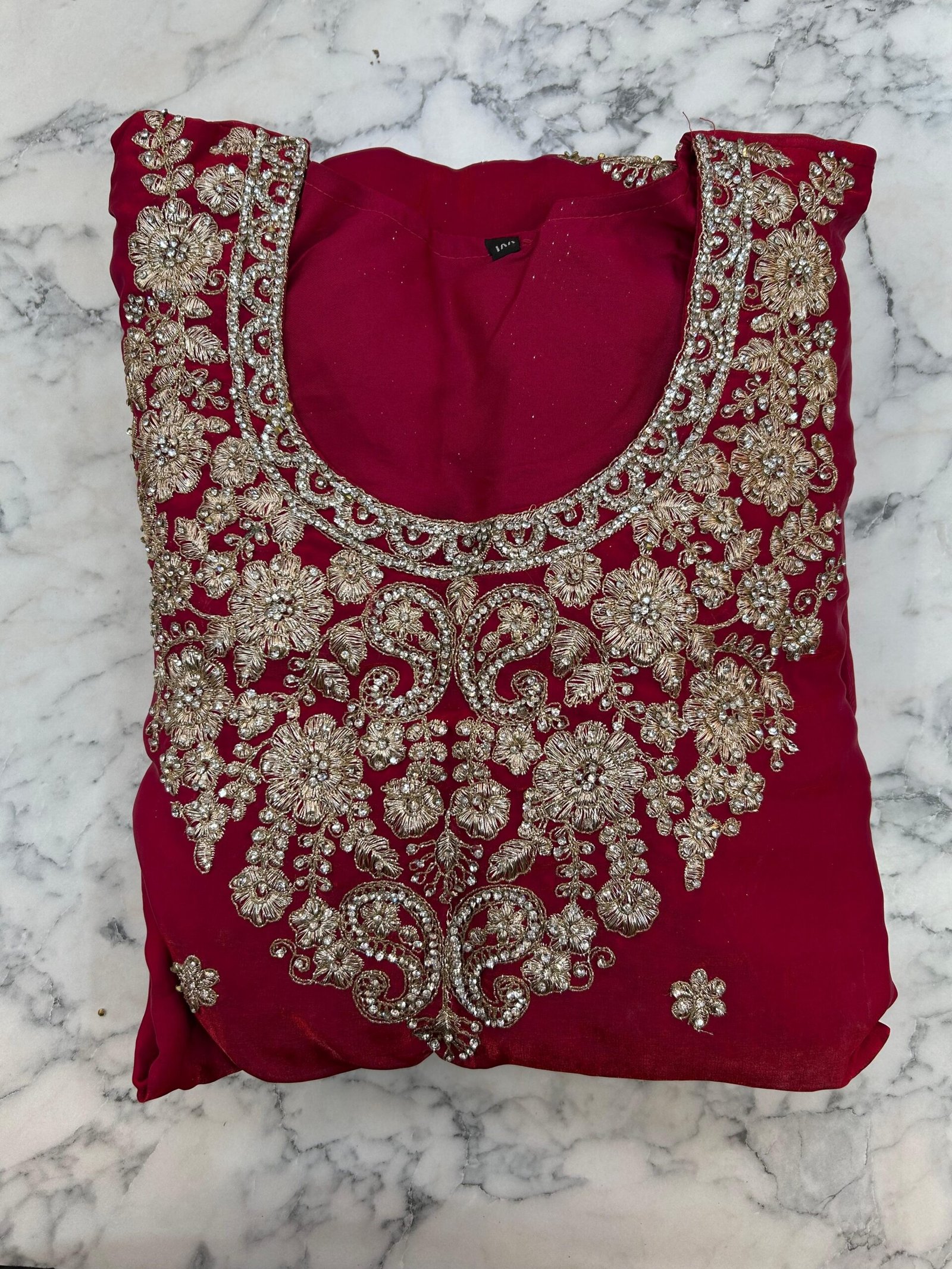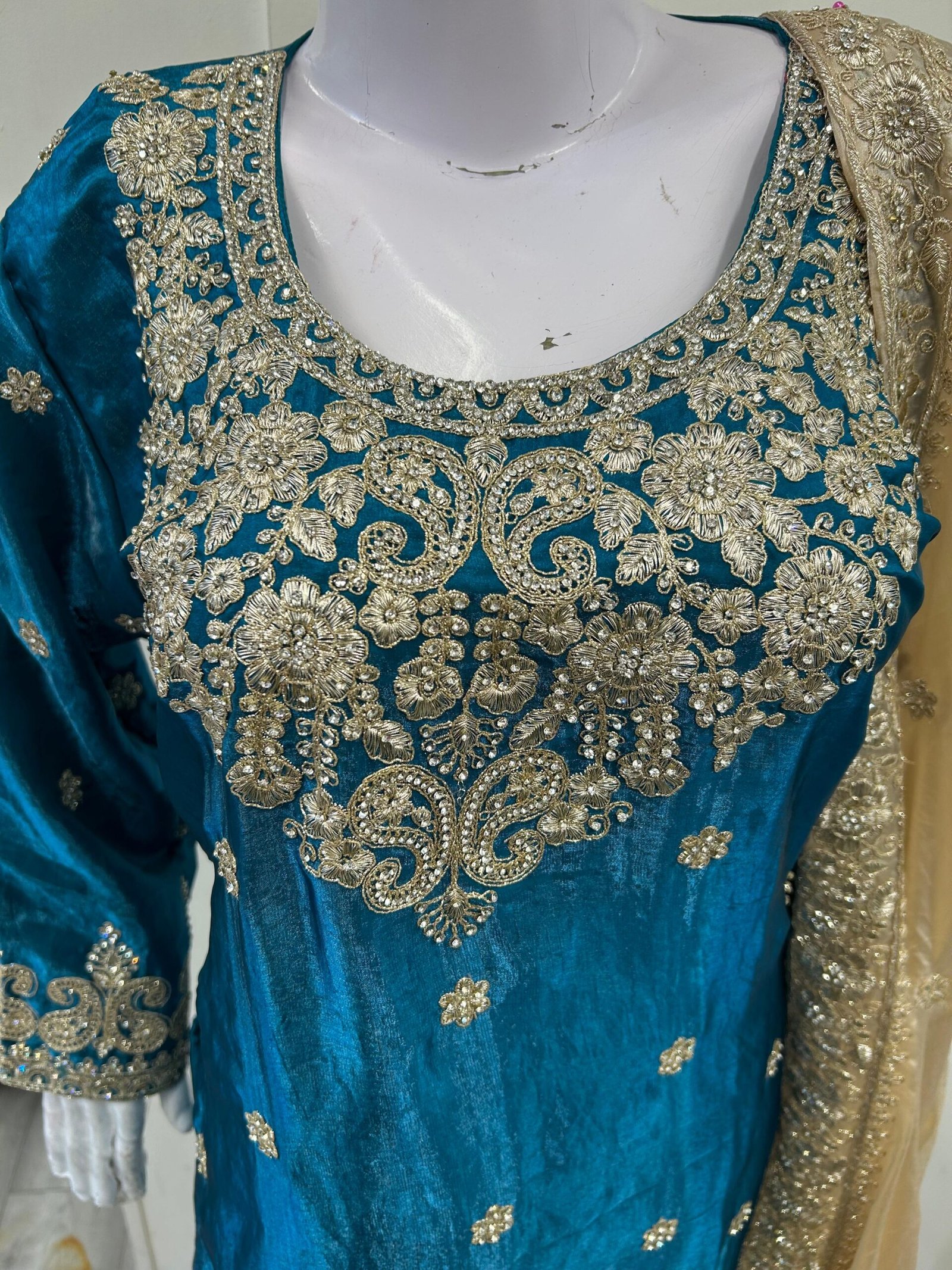 Whether you’re attending a festive celebration, a wedding, or a grand cultural event, this outfit promises to make you the center of attention. Every detail—from the ornate neckline to the delicately embroidered dupatta—has been designed to elevate your style with effortless class.