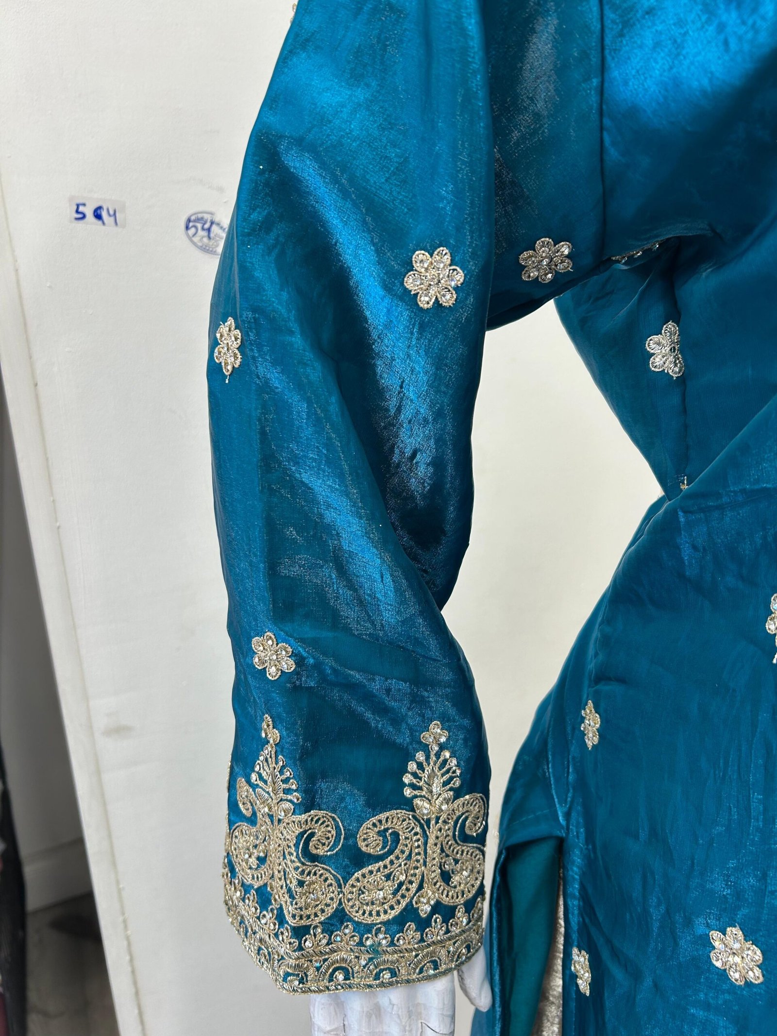 The sleeves carry matching detailed embroidery along the cuffs, tying the entire design together with perfect harmony.