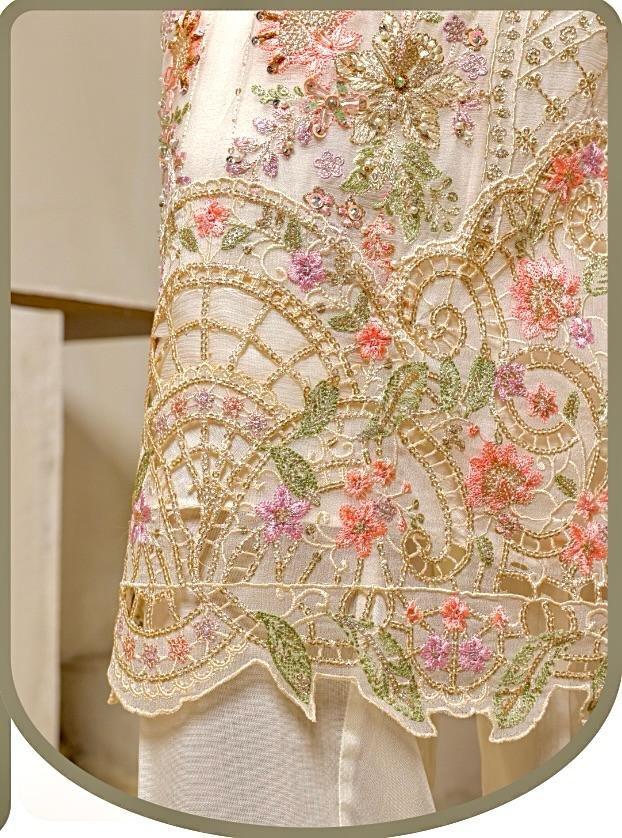 Immerse yourself in timeless sophistication with this breathtaking ivory embroidered ensemble, crafted to perfection for those who appreciate subtle luxury. The outfit features a soft, creamy ivory base that exudes purity and grace, making it ideal for both daytime and evening celebrations.