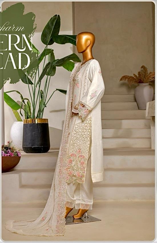 ✨ Ivory Blossom Embroidered Luxury Ensemble – Classic Elegance Redefined