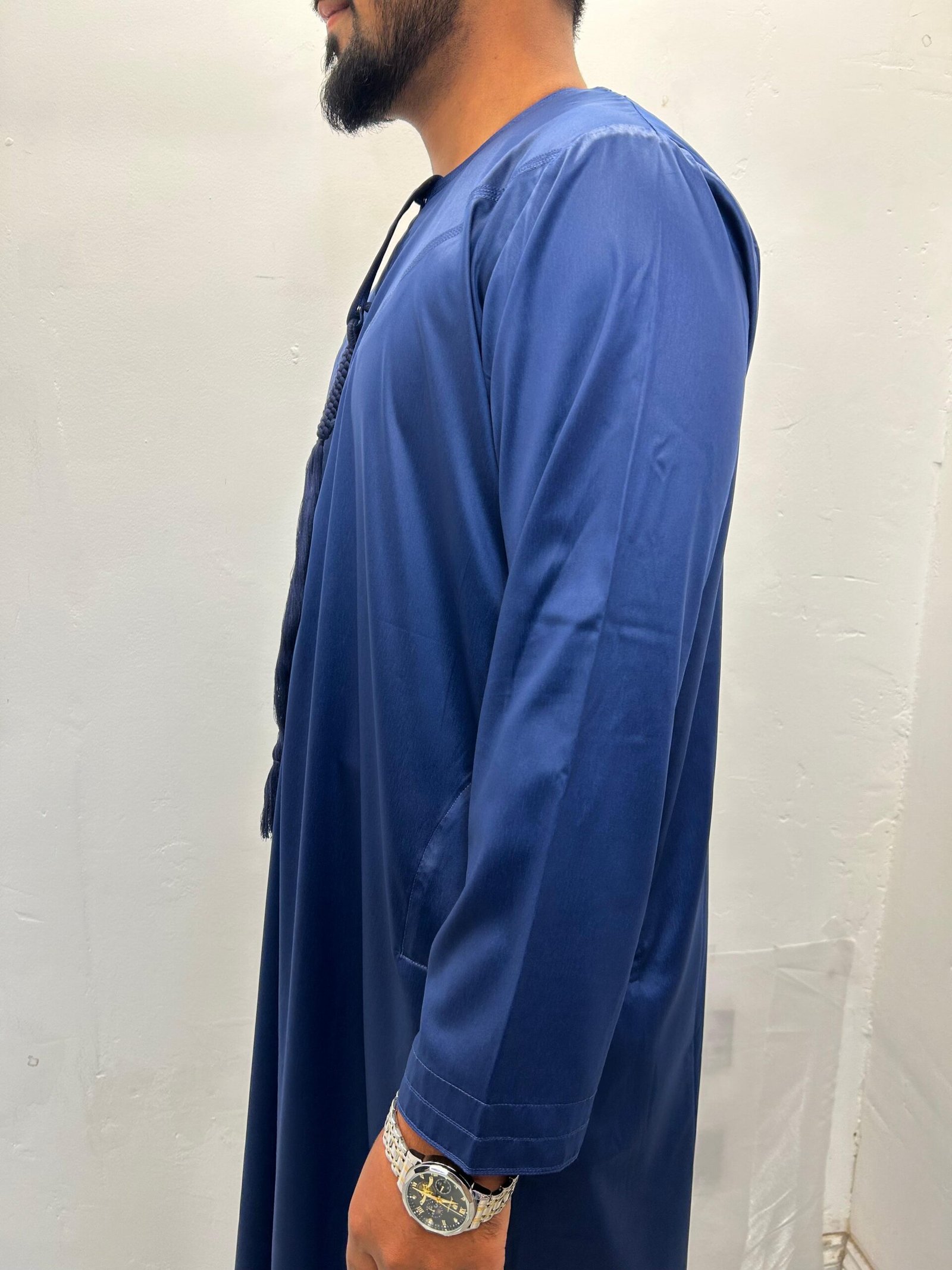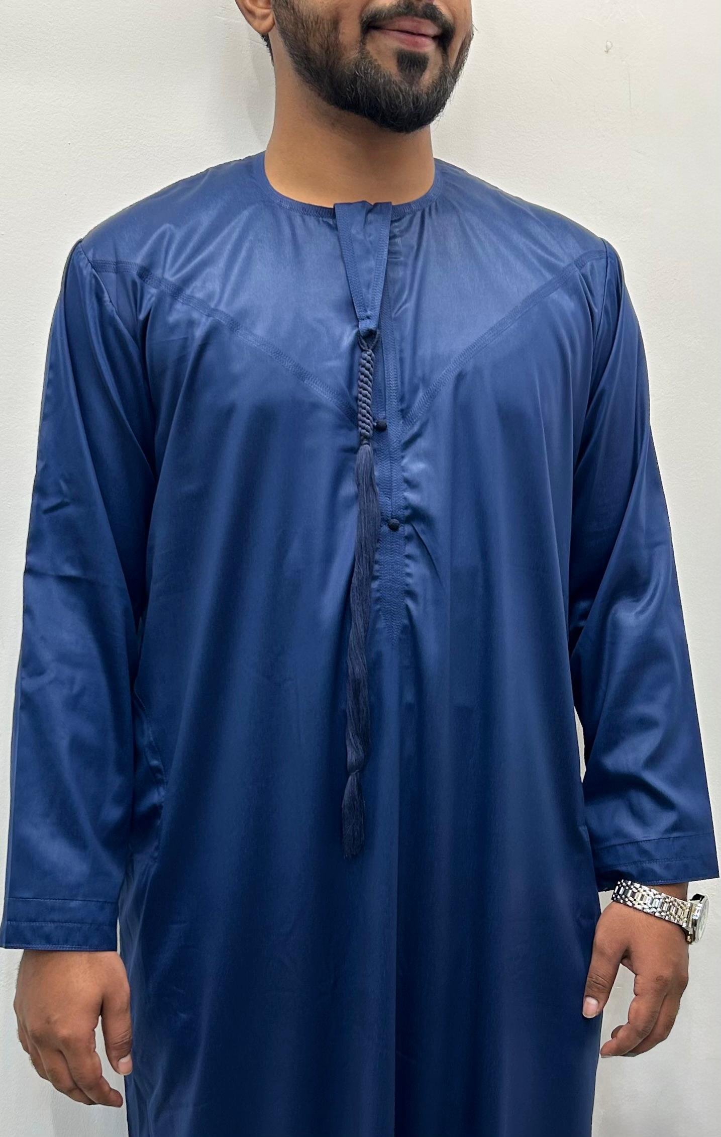 Discover the perfect mix of tradition and modern style with the Navy Blue with shiny Emirati Thobe . Made for comfort and elegance, this thobe features a smooth creamy colour with a gentle shine, making it ideal for formal events, cultural occasions, or stylish everyday wear.
