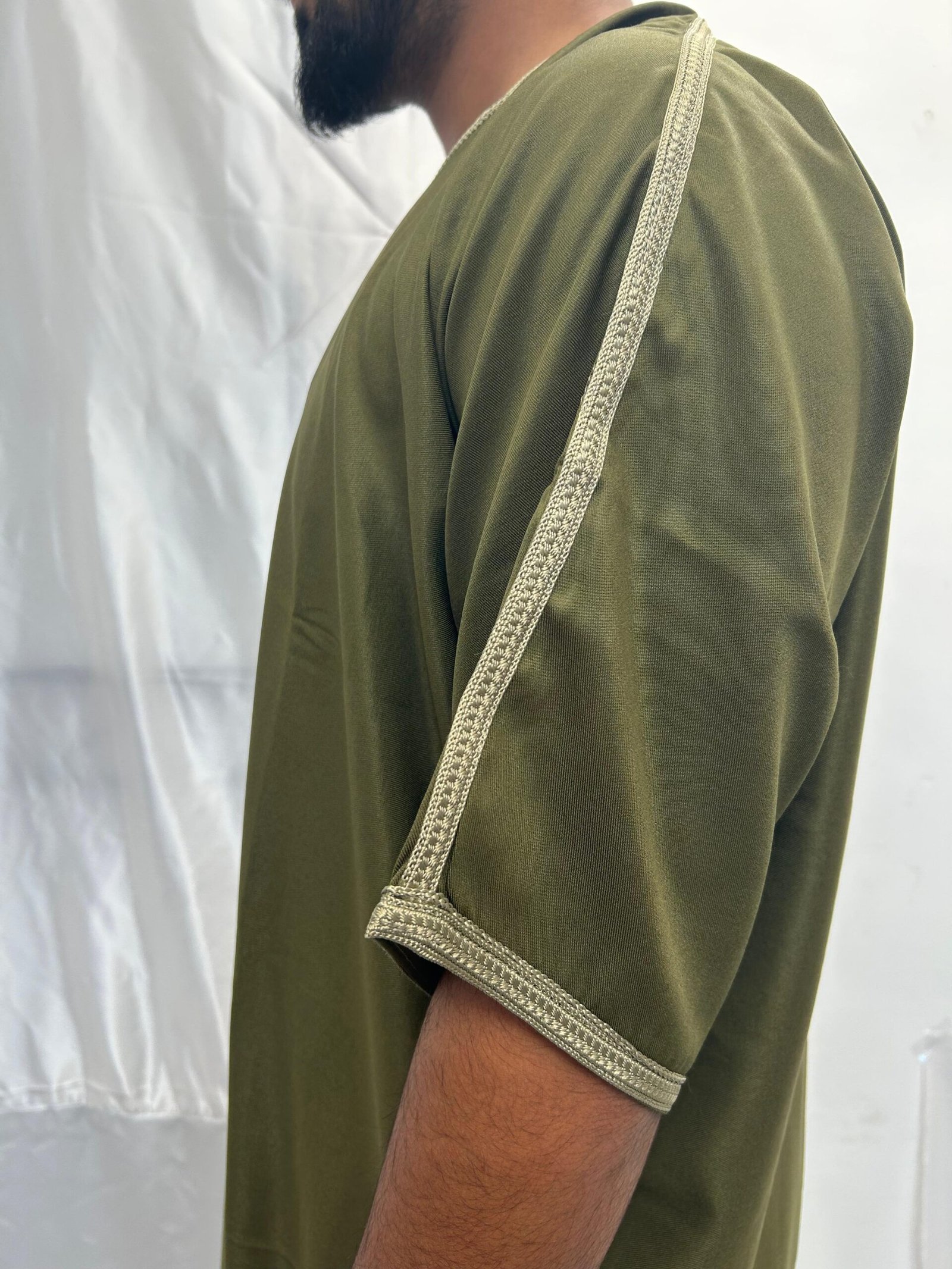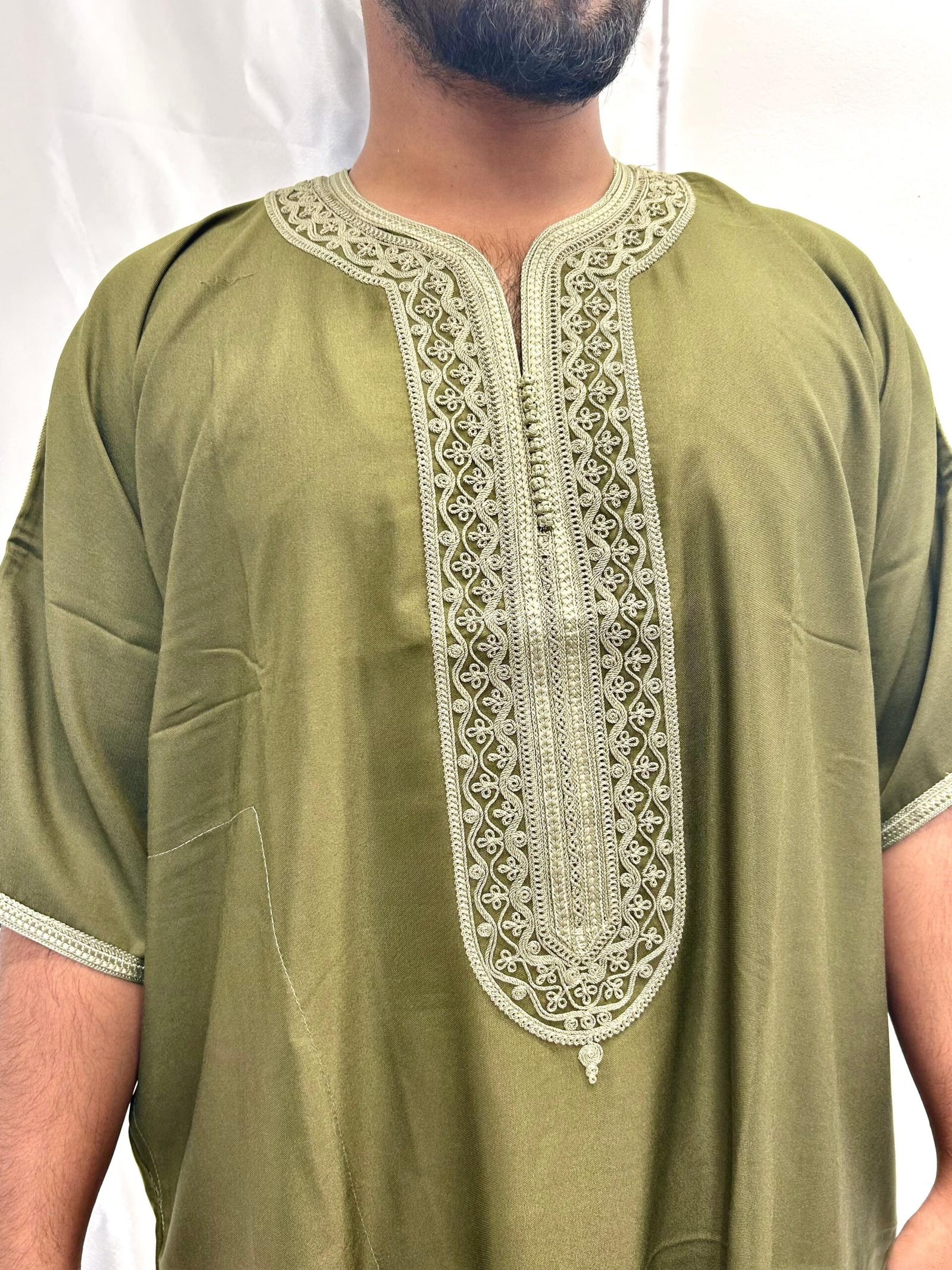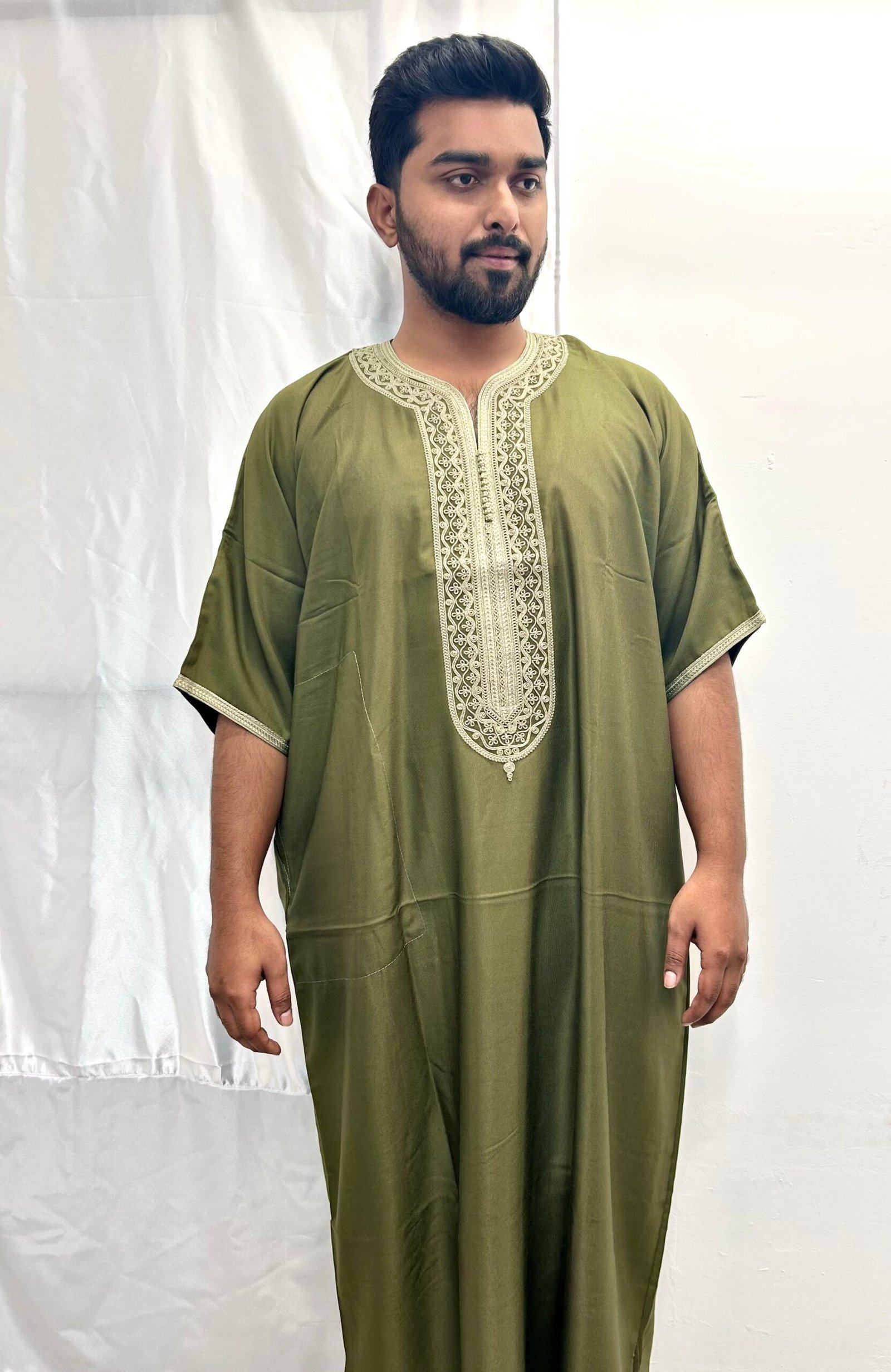 OLIVE GREEN WITH WHITE EMBROIDERY Moroccan Thobe