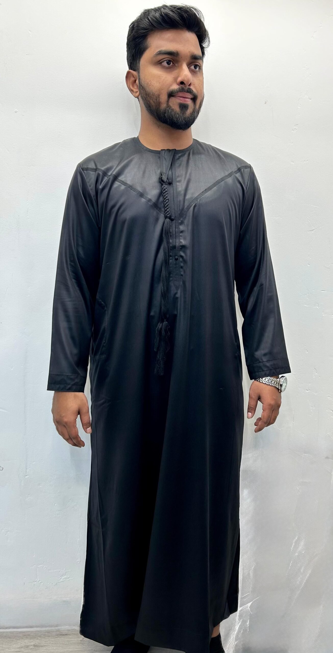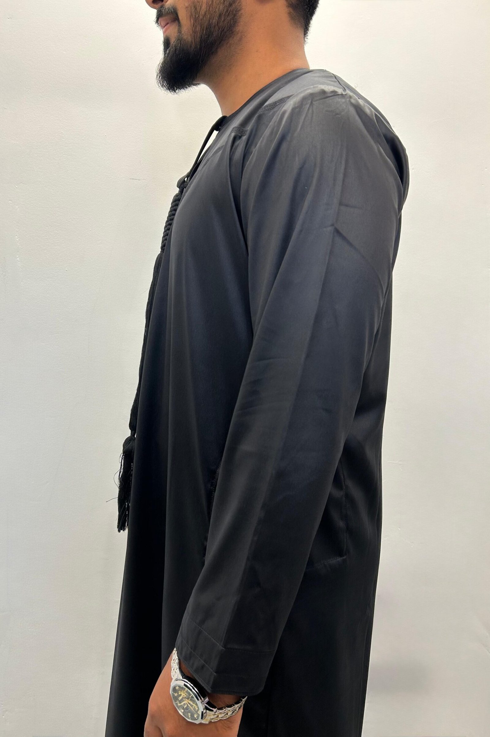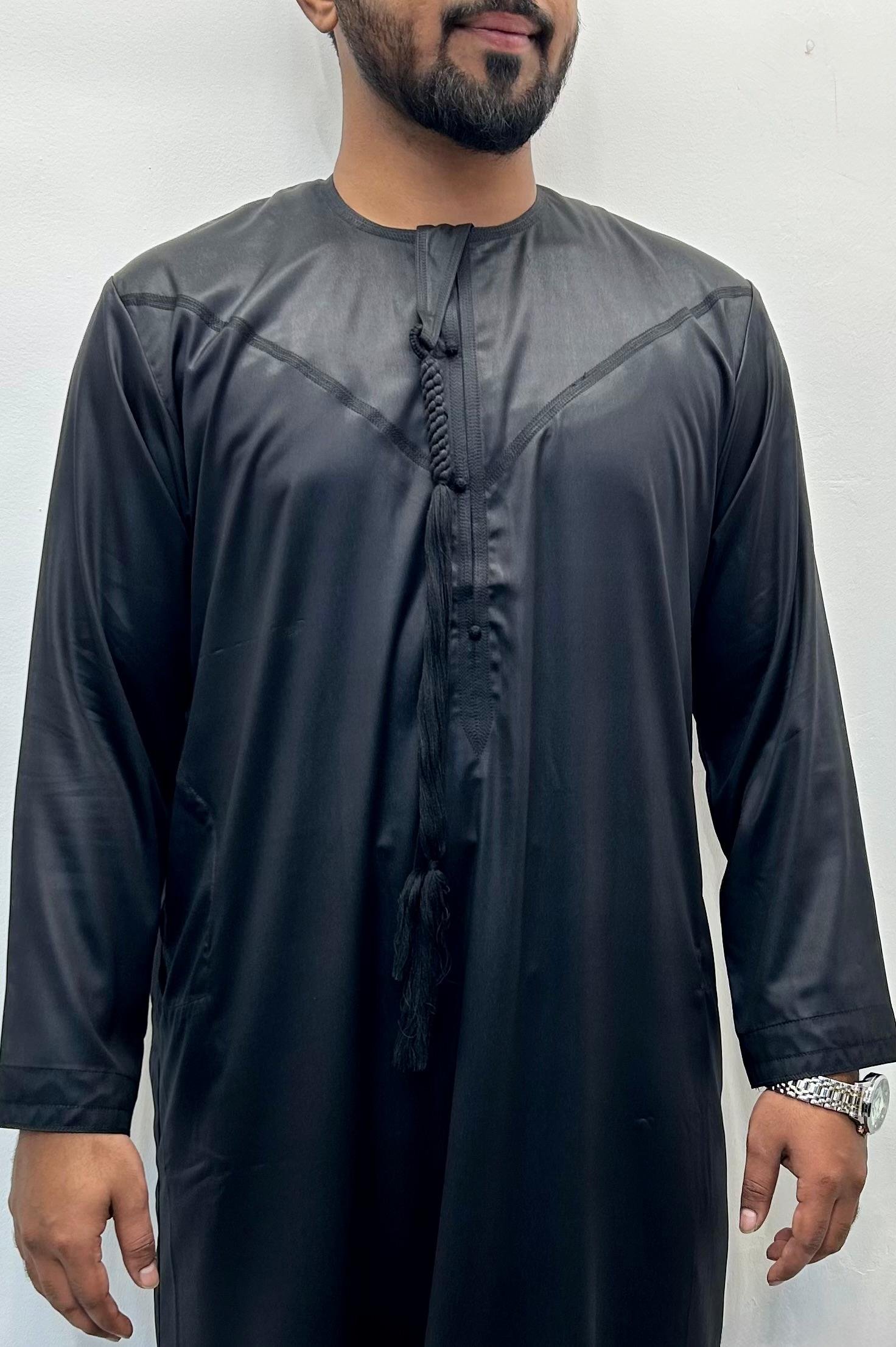 Discover the perfect mix of tradition and modern style with the Premium Black With Shiny Emirati Tassel Thobe . Made for comfort and elegance, this thobe features a smooth creamy colour with a gentle shine, making it ideal for formal events, cultural occasions, or stylish everyday wear.