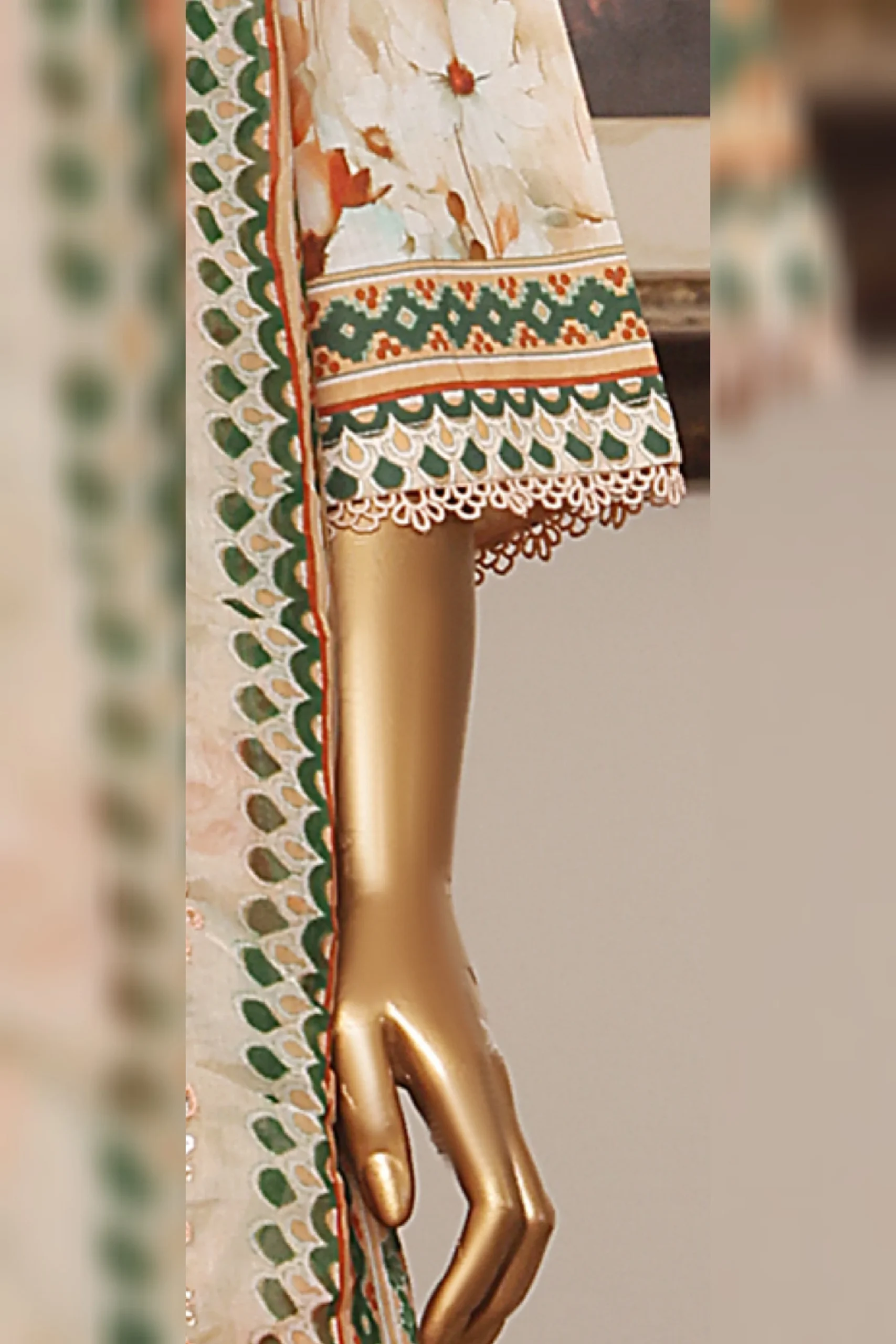 This Riwayat Premium Embroidered Lawn 3-Piece Suit features a sophisticated blend of traditional design and contemporary elegance.