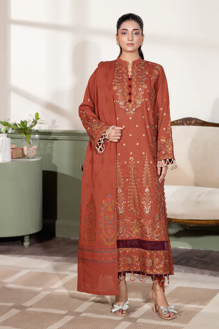 •Its base color is Rust Orange, embellished with intricate multi-colored embroidery in shades.